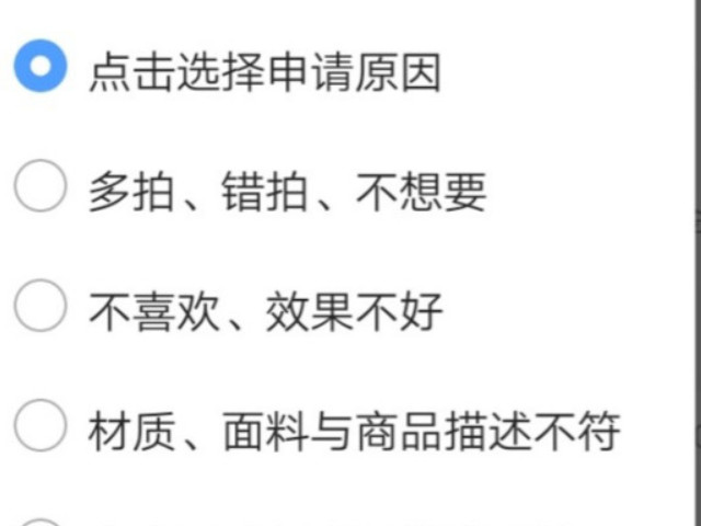 6. 选择退货原因点击后,在弹出的原因内选择需要退货的原因。